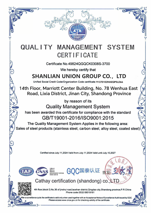 ShanLian Union Group has been rated as “China’s AAA Excellent Enterprise” and “China’s Leading Enterprise in Metal Industry” from 2009 to 2025, and has been committed to becoming a global leader in metal solutions, creating value for customers and contributing to the sustainable development of society.