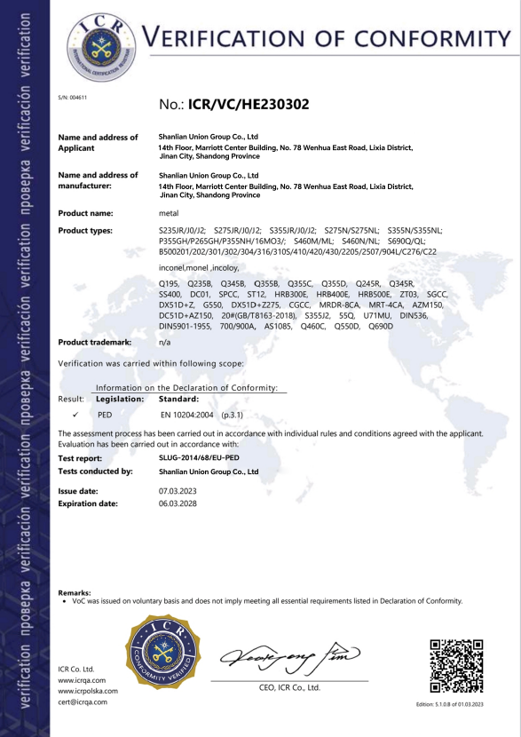 ShanLian Union Group was established in 1992. It is a globalized joint enterprise group with metal industry as its core and diversified development. It has established 12 branches and offices around the world (including Shanlian New Materials Co., Ltd., Shanlian Steel Co., Ltd., etc.).